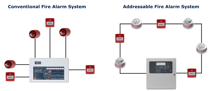 A conventional fire alarm divides your building into zones, with each zone containing its own detectors and call points. When a device is triggered, the control panel identifies which zone the activation came from, helping users quickly locate the source of the alert. This system is ideal for small to medium-sized premises where simplicity and reliability are key.